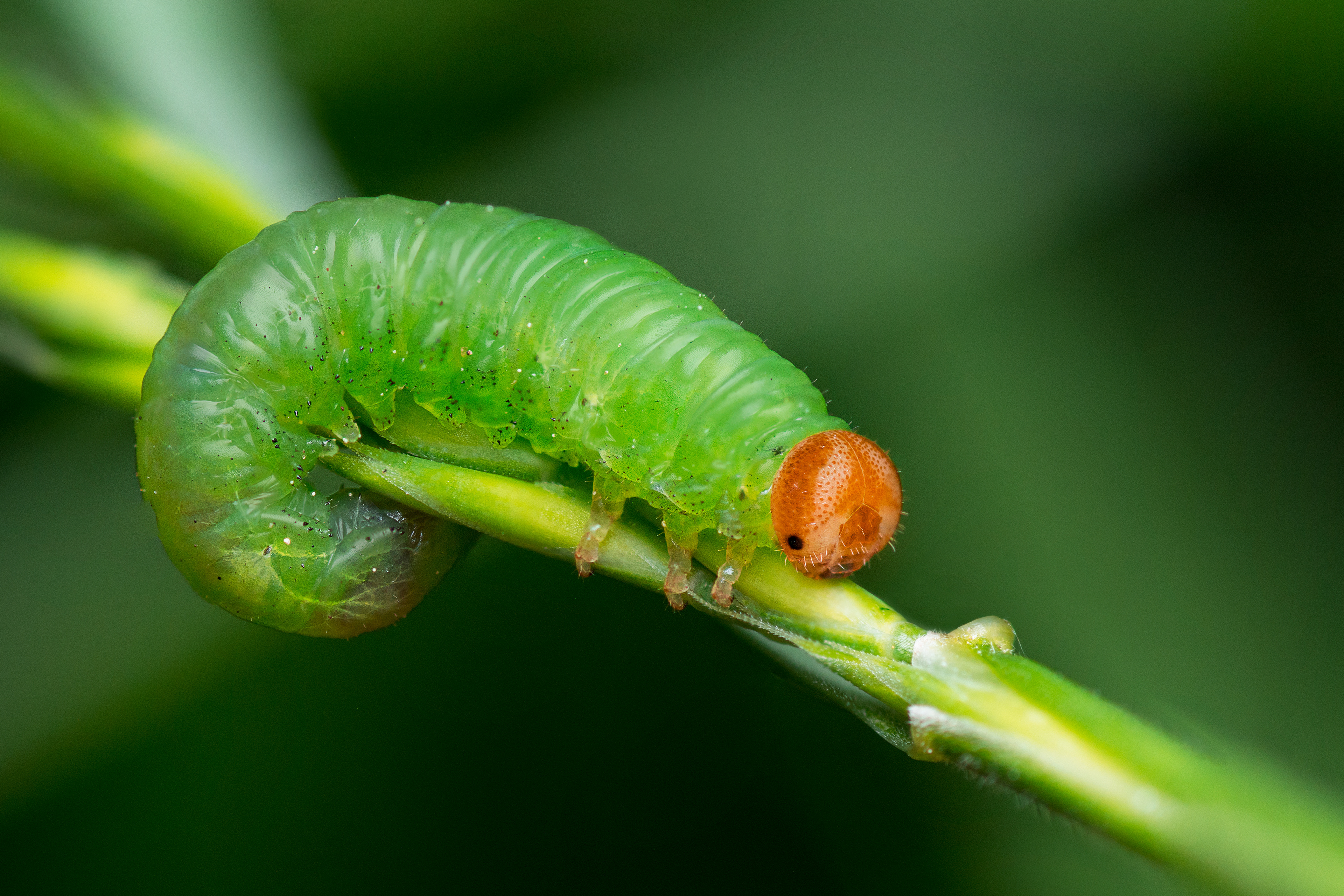 Sawfly larvae, resemble caterpillars but are distinguished by their unique features: They have fewer prolegs and no crochets. Photographing these larvae as well as caterpillars is a breeze; they move slowly, allowing for easy capture. Their vibrant green bodies, contrasted with the orange head, make them an interesting subject. While adult sawflies have short lifespans, lasting only 7–9 days, the larval stage can endure for months to years. Many species feature parthenogenetic females, capable of reproducing without mating. These fascinating creatures feed on pollen, nectar, and other insects, making them essential contributors to ecosystems.